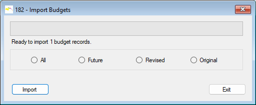 Select whether you want to import/update Original , Future , Revised or All of these types of Budget figures into TAS; it is worth noting that your import CSV file can contain one, two or all three types of budget record. Click the Import button to proceed.