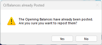 Important – If you are unsure about this, please consult your IT Manager or Supervisor before proceeding as the re-posting of these transactions could seriously invalidate your data, though you can later delete them in TAS. Always take a backup before importing Opening Balances.