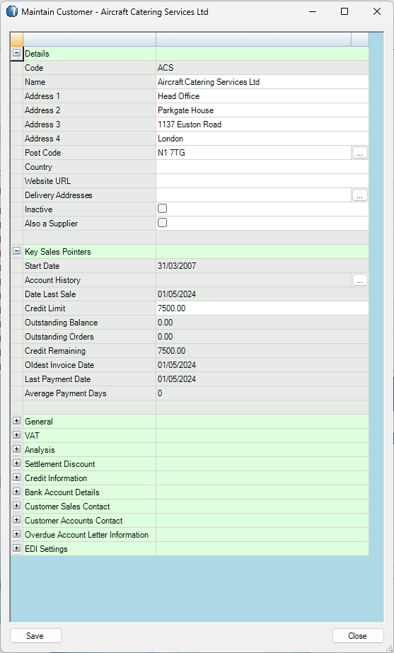 | 1 | Warehouse | Central | Yes | Select the default warehouse code for the customer by double-clicking in the warehouse cell. This is used in the SO Entry form to speed up data entry and in assigning stock movements if invoices have been printed and posted using TAS. |