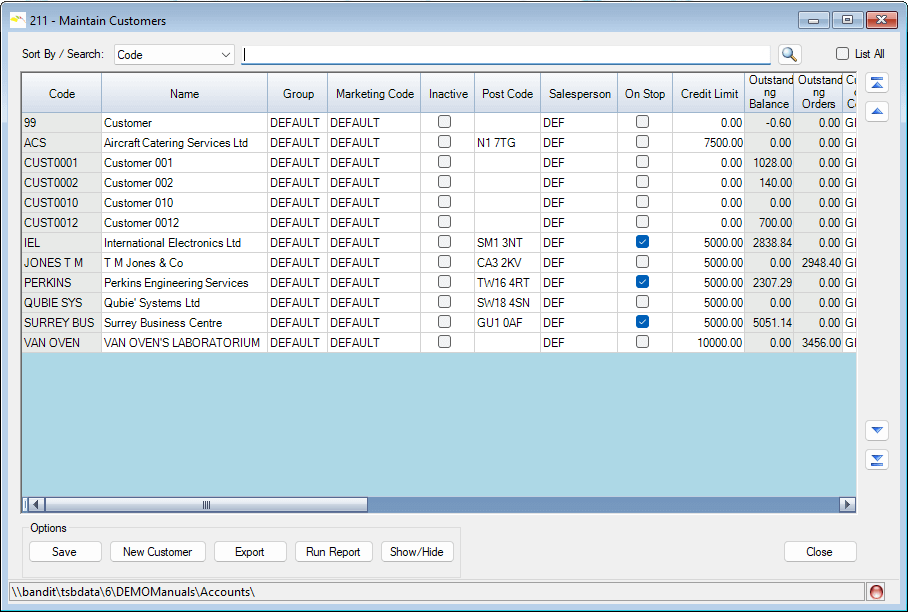 Double-click the Code of a Customer that you wish to amend or click New to create a new Customer.